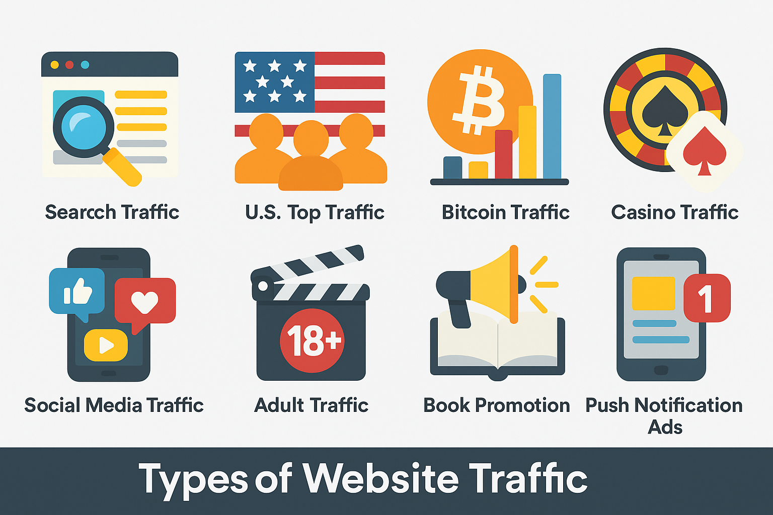 Supercharge your online presence with the All-in-One Website Traffic Solutions Package, built to deliver authentic, targeted visitors from every major online source — including search engines, social media, affiliate networks, push notifications, eCommerce, and more!